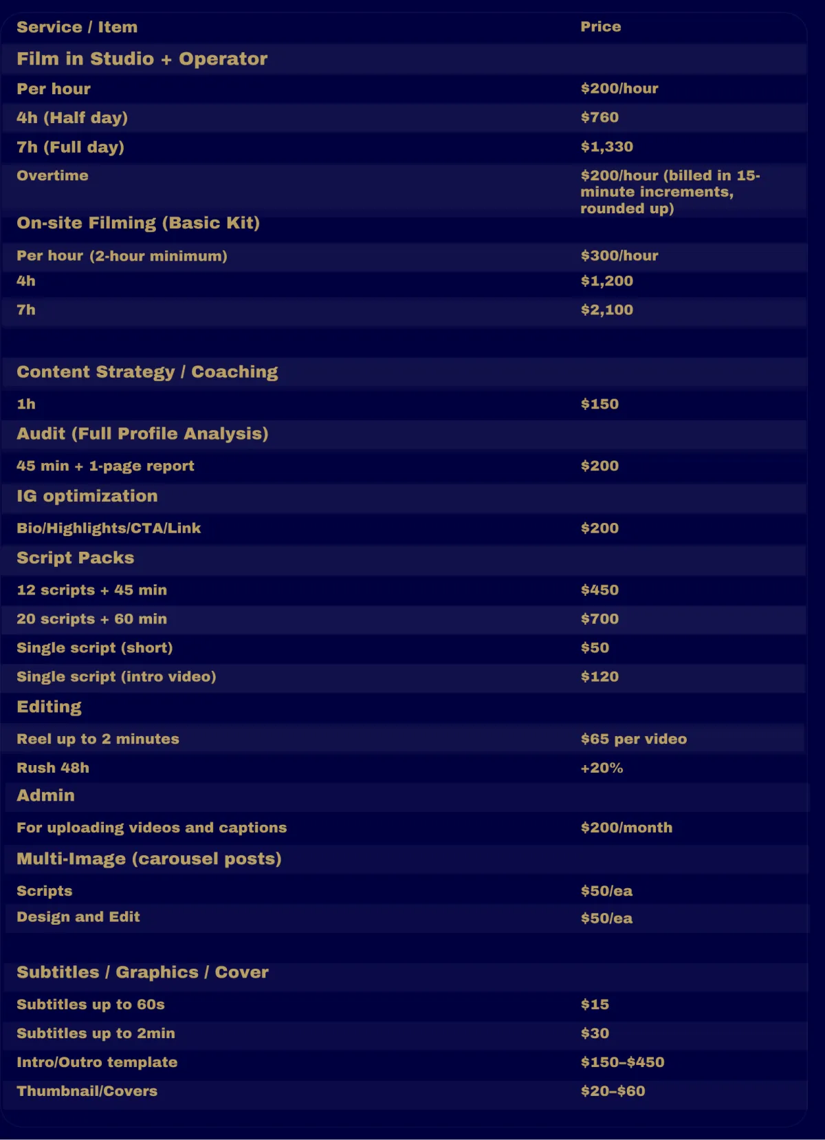 Before any filming begins, we conduct structured discovery and coaching sessions to understand your business model, positioning, target audience, growth goals, and market dynamics.